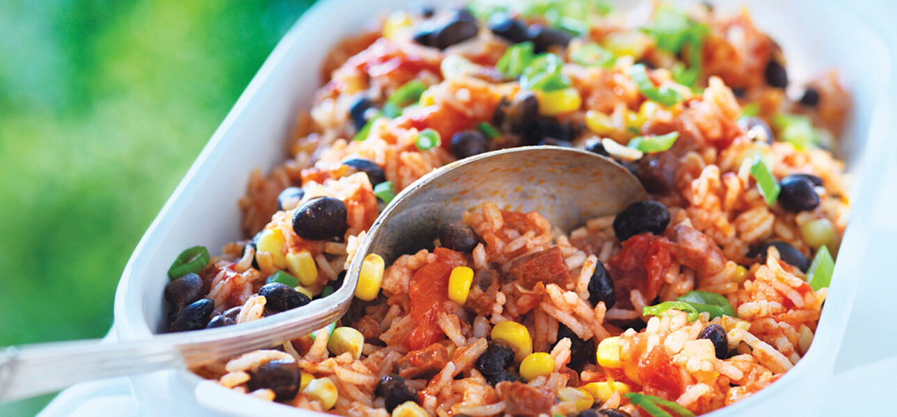 Remove from heat; gently stir in black beans and corn. Cover and let stand 5 min. Garnish with green onions.