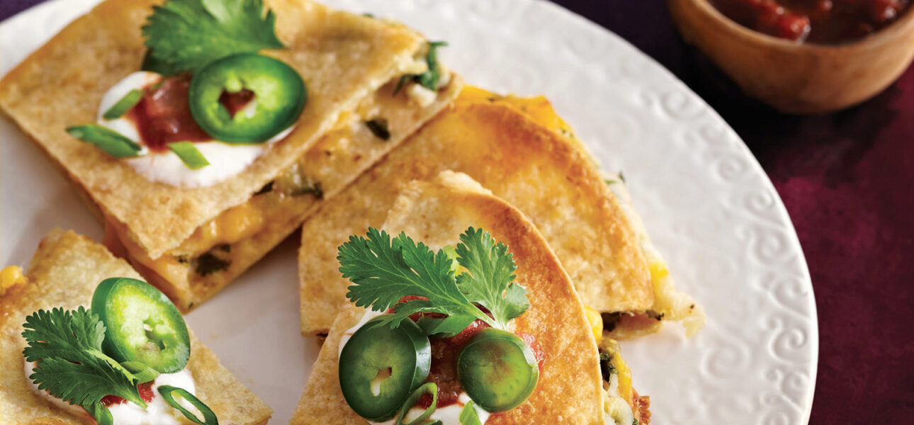 Place 4 tortillas from fajita kit on a baking sheet and divide potato mixture evenly overtop, spreading to edges, then top each with 1/4 cup of cheese and another tortilla. Brush tops with remaining oil. Bake until cheese is melted and tortillas are golden brown, about 15 min. To serve, evenly divide green onion, jalapenos, cilantro, sour cream and 1/4 cup(60 mL) salsa from fajita kit overtop.